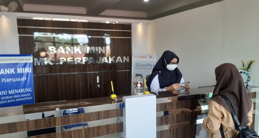 perpajakannews - BANK MINI SPR berdiri Maret 2021, bekerjasama dengan Bank Riau Kepri. Keberadaan bank mini di SMK Perpajakan Riau tak lepas dari upaya sekolah meningkatkan kualitas pendidikan. Sehingga siswa, khususnya jurusan Perbankan dan akuntansi di sekolah ini bisa memiliki bekal kompetensi yang lebih baik.
